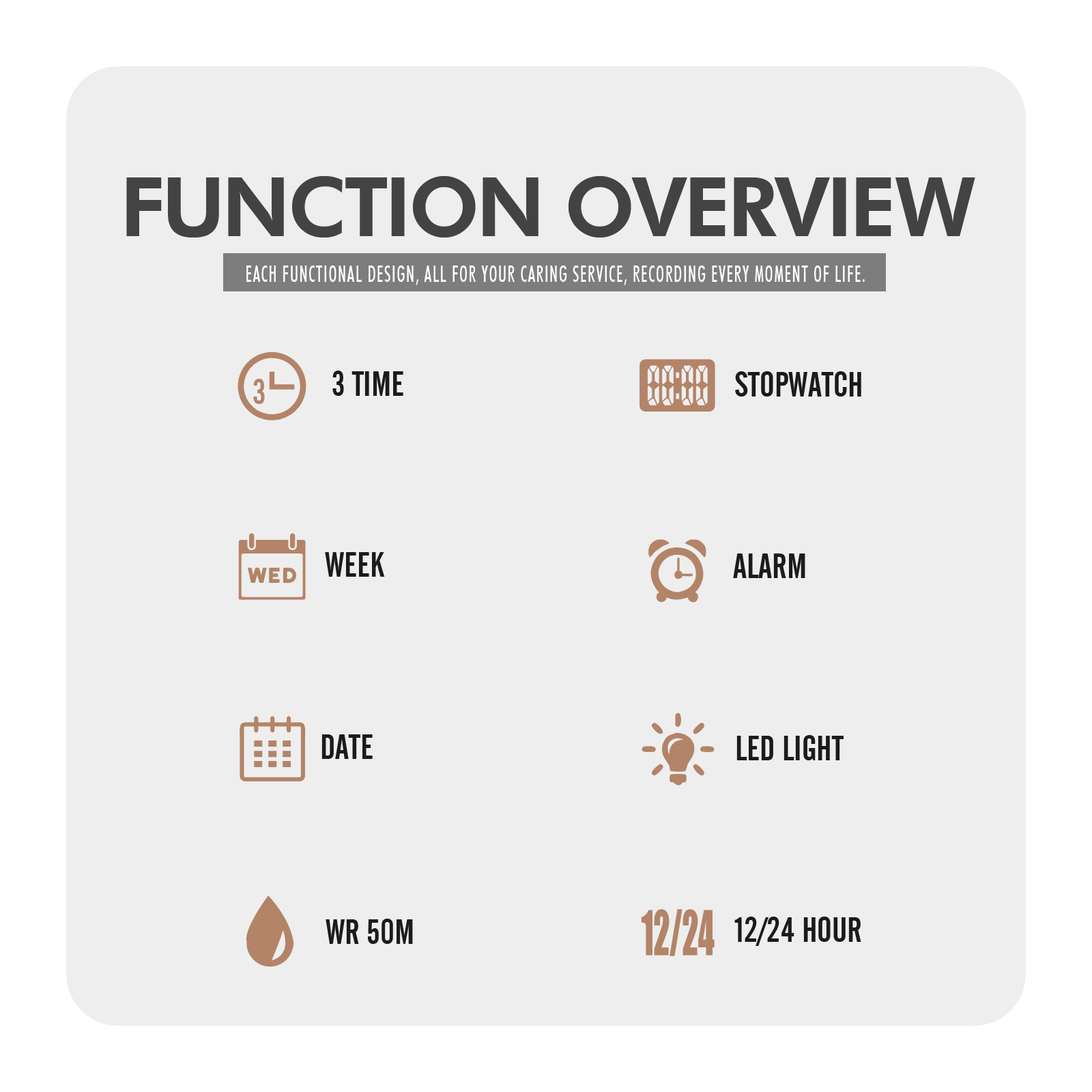 | ویژگی | 2 زمانه, زنگ هشدار (آلارم), عقربه یا شاخص شبتاب, نور پس زمینه ال ای دی |