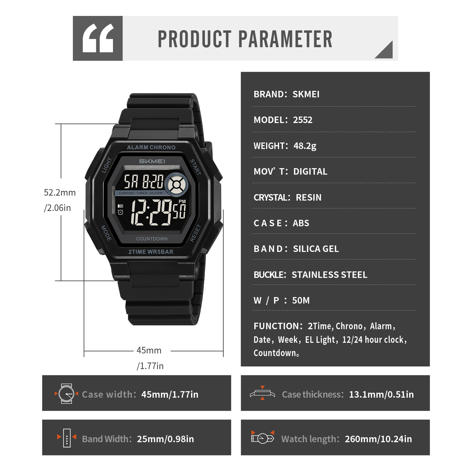 ساعت مچی دیجیتال مردانه اسکمی مدل 2552 BK